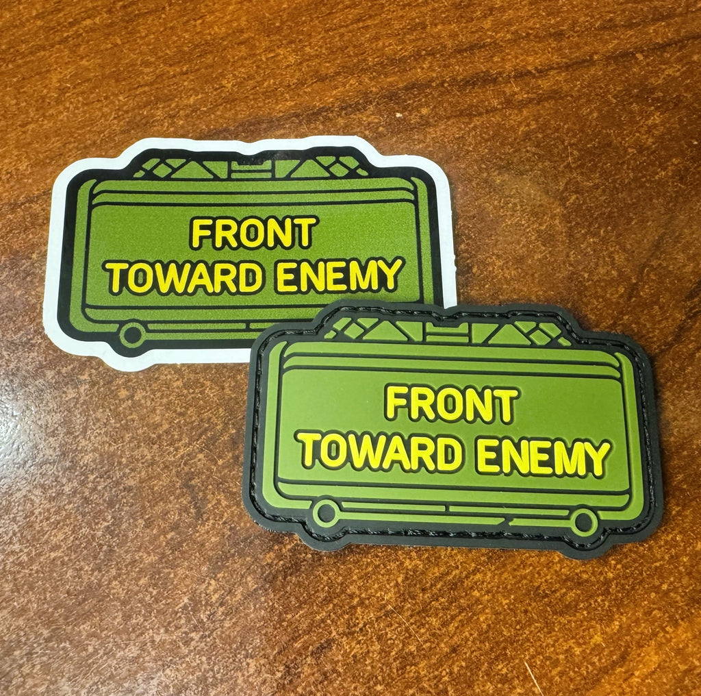 The Clacker Claymore Mine - 'Front Toward Enemy' - 3 inch PVC Patch & Sticker - Combo
