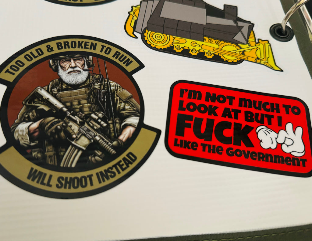 This badass sticker pack includes five of our most savage designs—built for patriots, misfits, and anyone who’s done playing nice. Each sticker delivers unapologetic attitude, grit, and a middle finger to conformity.